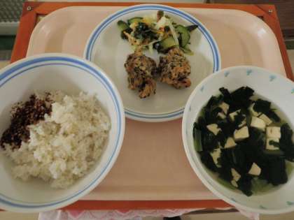 9月11日 ごはん かつおのふりかけ 鶏肉の香味揚げ キャベツの海藻サラダ すまし汁 牛乳 公開日 2014/09/11 更新日 2014/09/11 今日の給食 《今日の献立》 ●ごはん ●かつおのふりかけ ●鶏肉の香味揚げ ●キャベツの海藻サラダ ●すまし汁 ●牛乳 《食材の産地》 鶏肉(鳥取)、わかめ(徳島)、にんじん(北海道)、キャベツ(岩手)、きゅうり(岩手)、小松菜(埼玉) いいね(0)