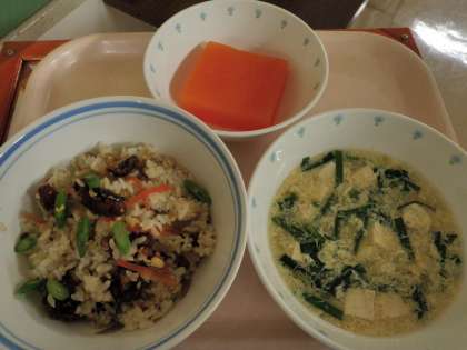 10月10日 さんまのひつまぶし風 かきたま汁 キャロットゼリー 牛乳