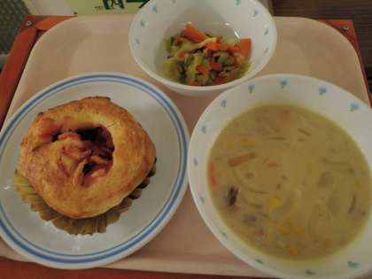 10月16日 アップルロールパン コーンクリームスープ 野菜ソテー 牛乳