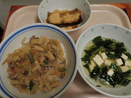10月27日 うま煮丼 すまし汁 黒蜜寒 牛乳