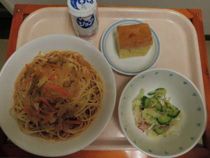12月2日 スープスパゲティ たこのマリネサラダ 洋梨のケーキ ジョア