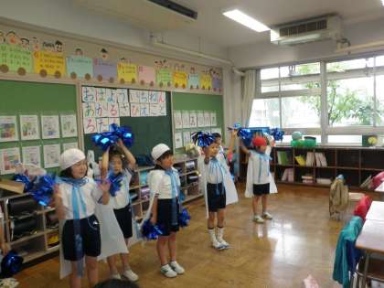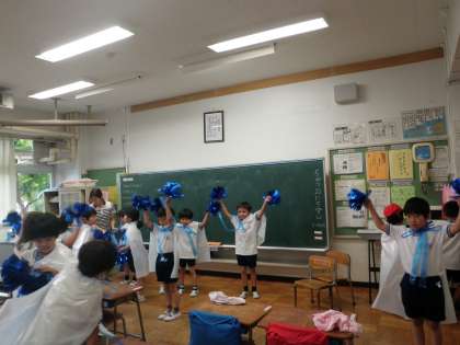 雨のため教室の中で、表現の練習を楽しそうにしていました。
