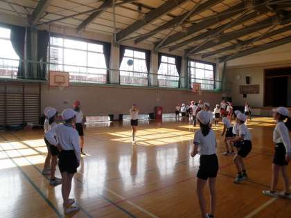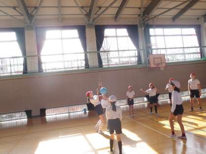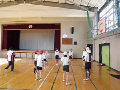 ボールを落とさないようにみんなで協力してパスをしていました。