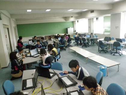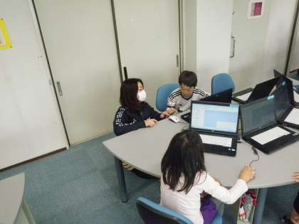 一人一人が賞状の台紙に自分で考えた文章を入力しています。