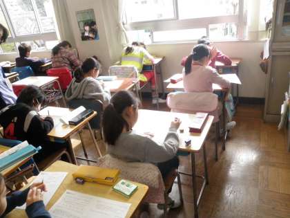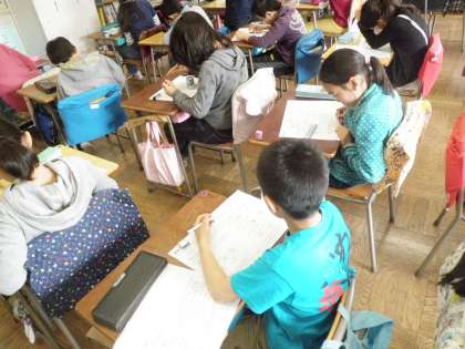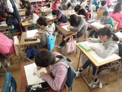 ワークシートを使って五年生で学んだことが身についているか確認していました。