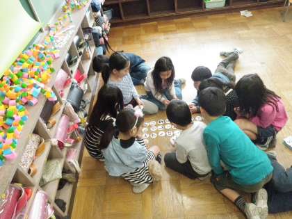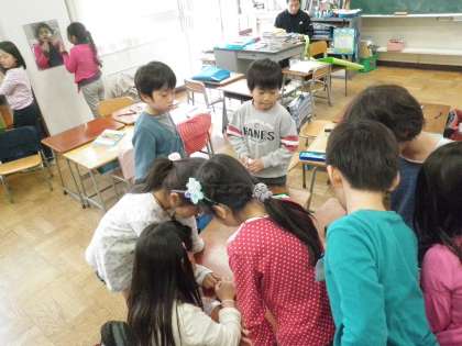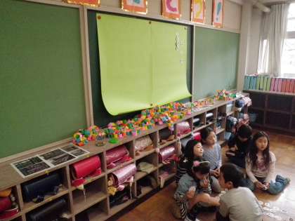 入学式に向けて、教室の飾りをみんなで協力して作っていました。