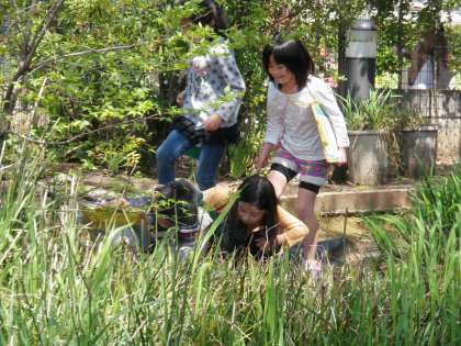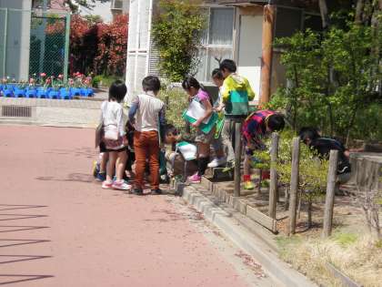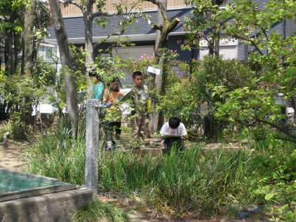 3年生になって始った、理科。春の植物、昆虫を探しにビオトープに行きました。