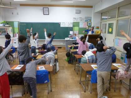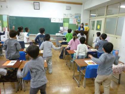 教科書を開き、元気にいろいろな歌を歌いました。