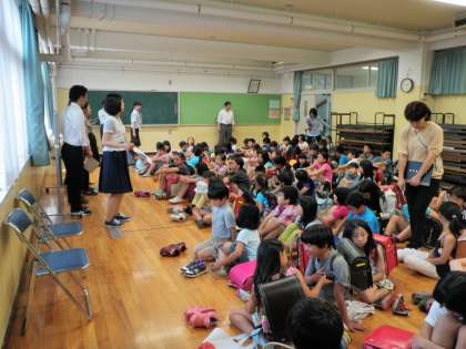 区内に不審者が出たという想定で見守りメールの配信し、保護者へ引き渡しという訓練を実施しました。