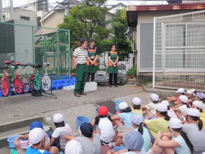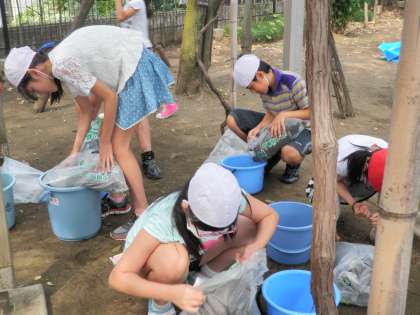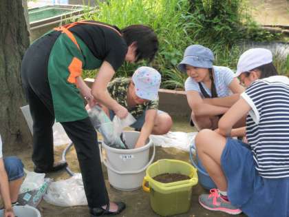 パルシステムの方からバケツ稲の植え方をご指導いただき一人ひとり植えました。