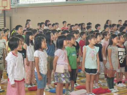 全校で「負けないで」を合唱しました。