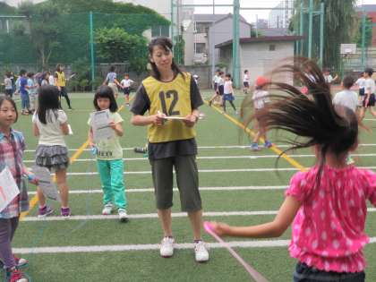 今週は、月、水、金の20分休みになわとび集会があります。リズムなわとびの後、個人練習、検定を受けていました。