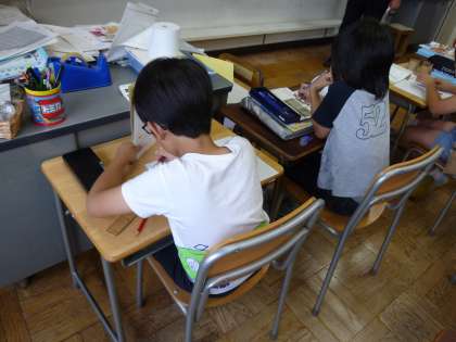 小数のわり算の学習を進めています。小数÷小数の文章題の意味を考えながら問題を解いています。