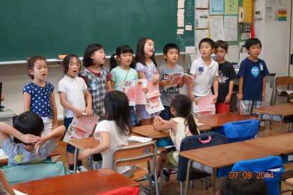 5校時に「おむすび ころりん」の研究授業、音読発表会を行いました。振り返りでは、友達の発表のよかったところをたくさん発表することができました。