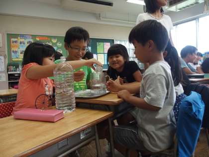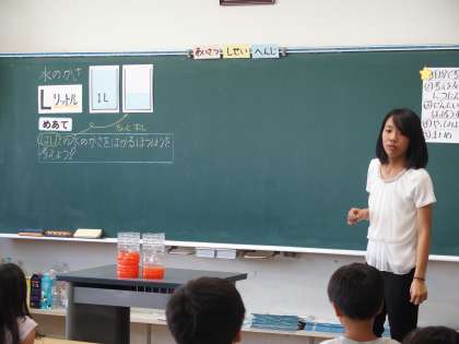 研究授業で水のかさの学習をしました。