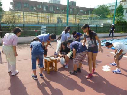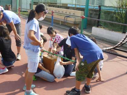 てこの原理について校庭で実際に確かめていました。
