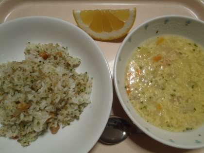 6月9日 揚げ大豆ごはん ふわふわ卵スープ 河内晩柑 牛乳
