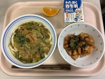 令和6年6月26日(水) 公開日 2024/06/27 更新日 2024/06/27 今日の給食 ⭐︎今日の献立⭐︎ ・カレーうどん ・タコぺったん ・国産オレンジ ・牛乳 ⭐︎食材の産地紹介⭐︎ 豚肉 (秋田) たこ (北海道) 大豆 (北海道) 粉かつお (鹿児島) 玉ねぎ (兵庫) にんじん (千葉) 長ねぎ (茨城) 小松菜 (東京) 生姜 (高知) 国産オレンジ (和歌山) いいね(0)