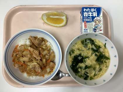 毎日暑い日が続いていますね。今日の給食の回鍋肉丼は味をハッキリさせて、ご飯と一緒に