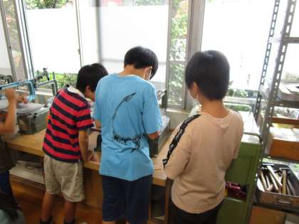 ものづくりクラブ 公開日 2024/07/18 更新日 2024/07/18 学校生活 ものづくりクラブでは、自分たちでテーマを決めて活動しています。上級生が下級生をサポートしながら取り組んでいます。今回の活動では、電動糸のこぎりで切る作業を手伝う姿が見られました。 いいね(0)