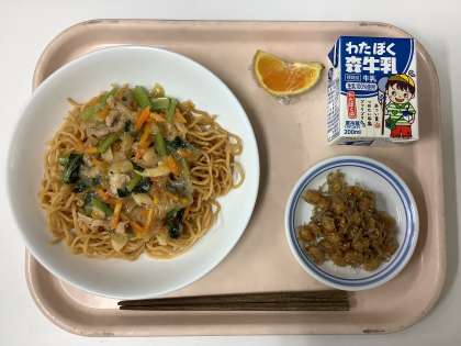 暑く食欲が無い日でも食べやすい麺はみんなに大人気でした。爽やかなおいしさのバレンシアオレンジもこの暑い中食べやすかったです🎵