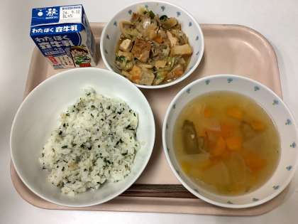 厚揚げは味噌との相性がばっちりで、そのまま食べても美味しい、わかめごはんと
