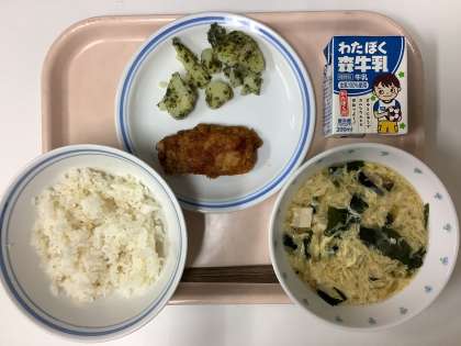 最近は、朝と昼で気温差が大きく体が辛くなる時期なので食欲がでる、魚の唐揚げバーベキューソースを給食に出しました。もうかを揚げてピリッと辛いバーベキューソースを上からかけました。ご飯が進む味で美味しかったです。辛さを中和する粉ふき芋、ほっとする卵スープとともにたくさん食べてくれると嬉しいです☺️運動会に向けてしっかり食べて頑張りましょう‼︎