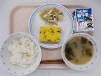 『ごはん 牛乳 千草焼き じゃがいもとわかめのみそ汁 野菜と油揚げのじゃこ和え』...