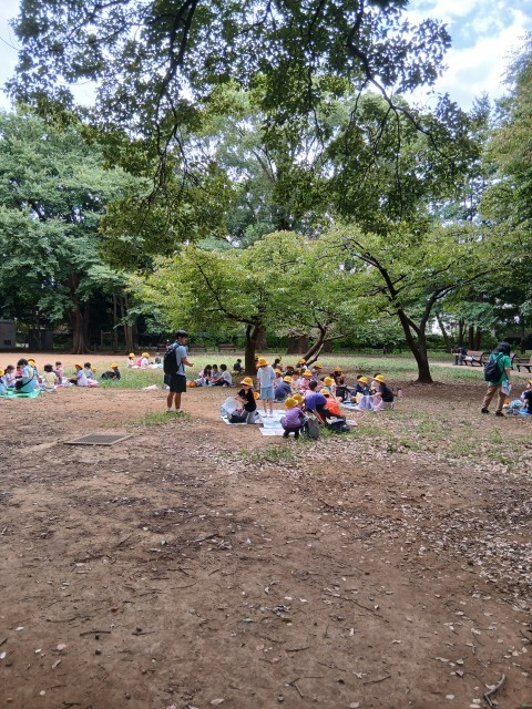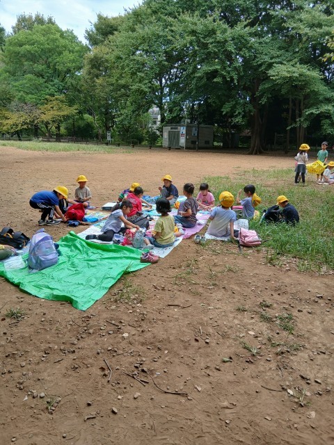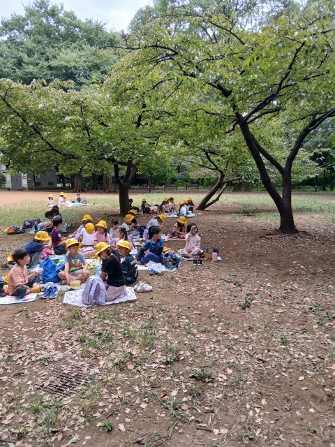 芝生広場でお弁当を食べました。心地よい風が吹いています。