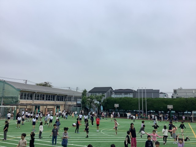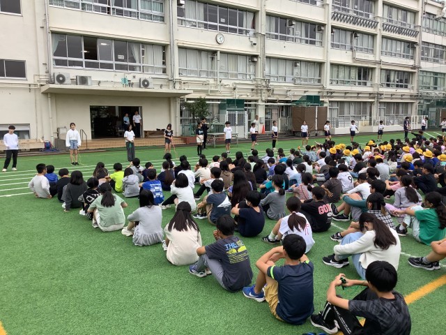 スポーツタイムを行いました。運動委員会の例示の後、自分の課題に向かって練習に取り組みました。