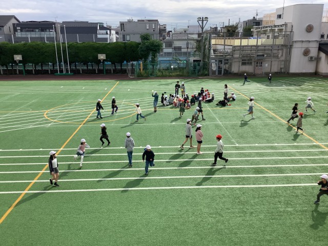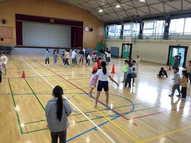 月T班(縦割り班)で共遊びを行いました。6年生が中心となってリードし、楽しく活動することができました。