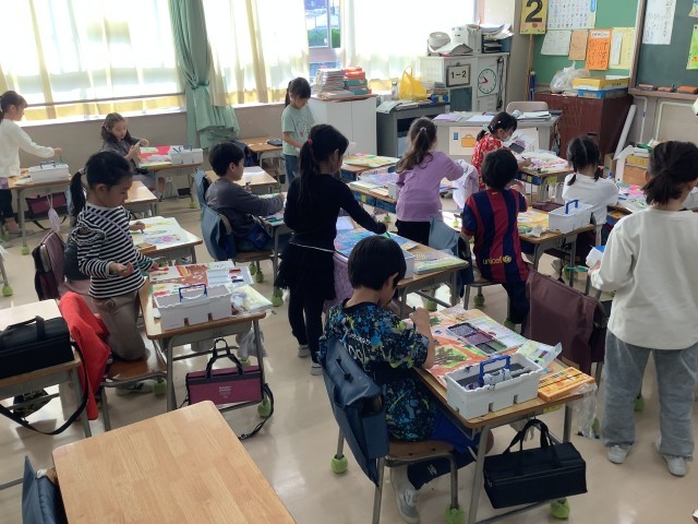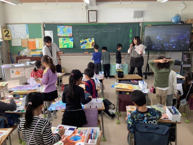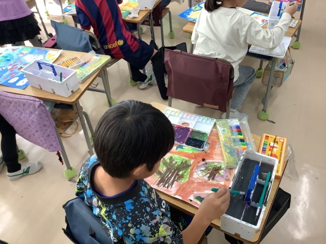 どうぶつえんの絵を仕上げました。多くの色を使って明るく描いています。