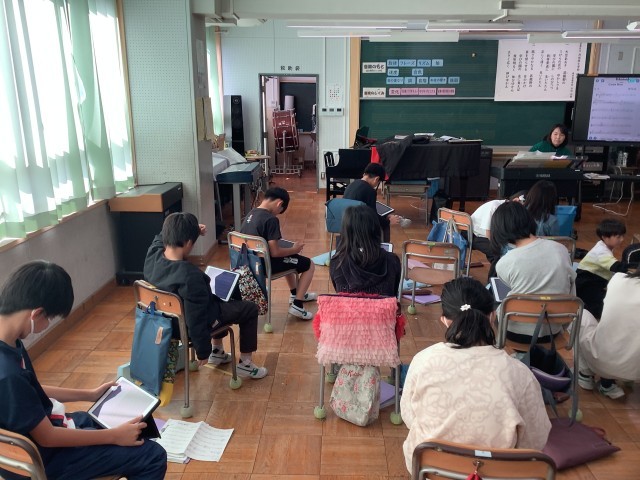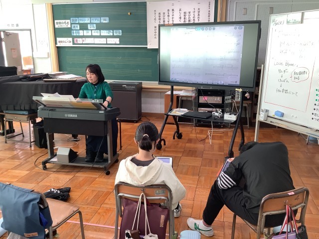 学習用情報端末上の楽譜も活用しながら、本時のめあての旋律を知ることについて取り組みました。