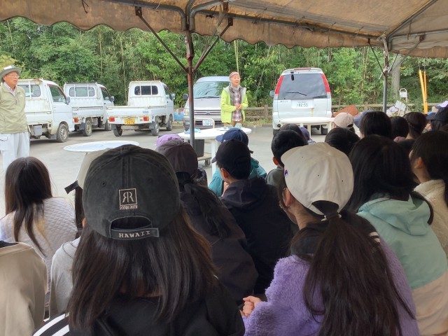 大山千枚田に到着しました。自然観察の前にお話を聞きました。