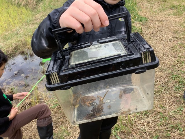 ザリガニ、バッタ、カエルなど多くの生き物と触れ合うことができました。