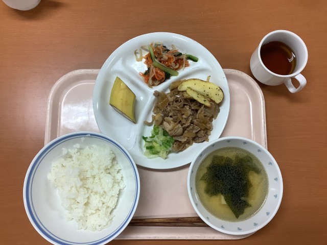 2日目の夕食は生姜焼きです。おいしくいただきました。ご飯などをおかわりする子もいました。