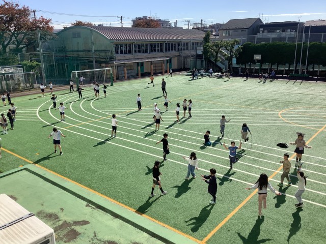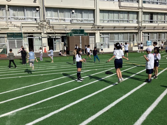 今週は短縄パワーアップ週間です。休み時間に校庭に出て、短縄に取り組みます。体力アップを目指す取組の一環です。