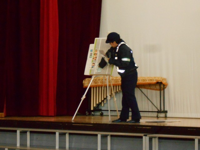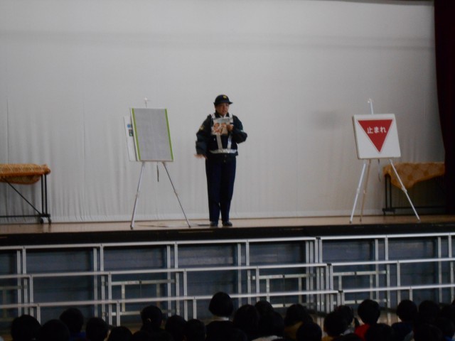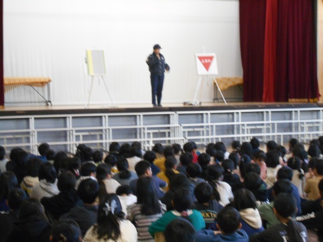 2回目の交通安全指導を行いました。今回も警察署の方に来ていただき、全校で話を聞きました。一人一人が道路の歩き方について、安全への意識を高めました。