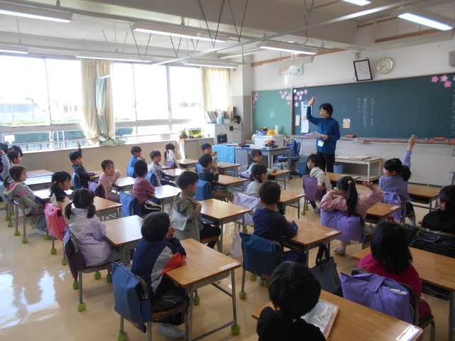 入学したばかりの一年生。それぞれの教室で学校生活が始まりました。