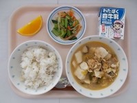 令和6年5月14日(火)の給食 公開日 2024/05/15 更新日 2024/05/15 今日の給食献立 『じゃこごはん 牛乳 家常豆腐 中華風野菜 ゆでそら豆』 ちりめん(愛媛)、生揚げ(国産)、豚肉(群馬)、そら豆(千葉県多古町)、たけのこ(鹿児島)、ねぎ(茨城)、人参(千葉)、ピーマン(茨城)、きゅうり(宮崎)、大根(千葉) 今日は一年生が、そら豆のさや剥きをしてくれました。『そらまめくんのベッド』を読んだ後、そら豆の花や育ち方について学びました。 いいね(0)