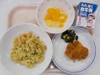 『五目ごはん 牛乳 いかの黄金焼き 田舎汁 セミノール』