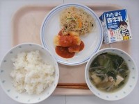 『さつまいもごはん 牛乳 鶏の照り焼き お月見白玉汁 磯和え ~十五夜献立~』 ...