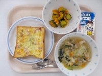 『コーンマヨパン 牛乳 野菜スープ かぼちゃとさつまいものサラダ』 豚肉(群馬)...