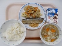 『ごはん 牛乳 さんまの塩焼き おくずかけ れんこんの梅きんぴら ~郷土料理献立...
