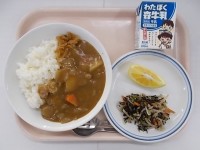 『カレーライス 福神漬 牛乳 大根ひじきのサラダ はるか』 鶏肉(静岡)、生姜(...