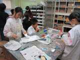 図工室にすむ鳥を作っています。一人ひとり工夫してあり、様々な色がすてきです。