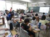 今日は旬のさんまを塩焼きにしました。サンマは秋が旬ですが、ここ数年は漁獲量が減り、とても高くなっています。今日も入手するのが大変でしたが、ぜひ子どもたちに旬のさんまを食べてもらいたいと思い、取り入れました。骨付きの魚は食べなれていない子が多く、やはり低学年では手を付けることができない子もたくさんいました。ぜひ、ご家庭でも少しずつ、骨付きの魚を食べていただけると助かります。