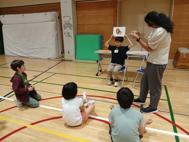 1・3年生は、ヒントからあてるクイズやゲーム(日本で言う船長さんの命令など)をしました。