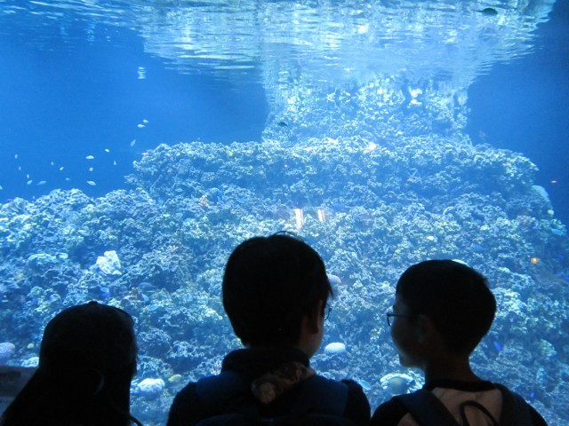 たくさんの種類のカラフルな海の魚やすごいスピードで泳ぐマグロ、水の中を飛んでいるように泳ぐペンギンなど、海の中の生き物をたくさん見ることができました。