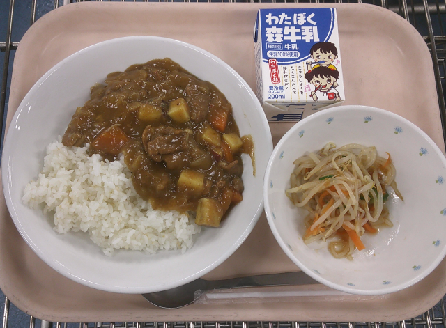 11月13日 秋のカレーライス もやしのサラダ 牛乳